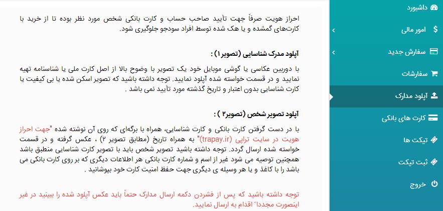 5- بعد از ارسال مدارک خود باید، کارت های بانکی خود را وارد نمایید. برای انجام این کار از منوی سمت راست پروفایل کاربری خود باید گزینه کارت های بانکی را انتخاب کنید.